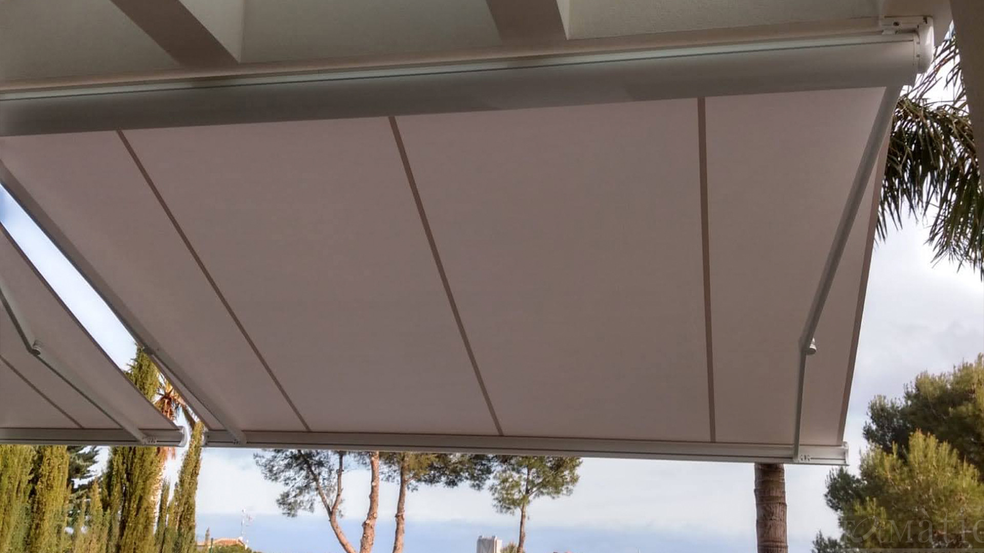 Gracias a su estructura de perfiles de aluminio, el sistema se cierra de forma compacta, protegiendo todos los componentes del toldo. Ofrecemos opciones con brazos invisibles o de punto recto, completamente integradas en el interior del cajón cofre, asegurando una estética limpia y duradera.